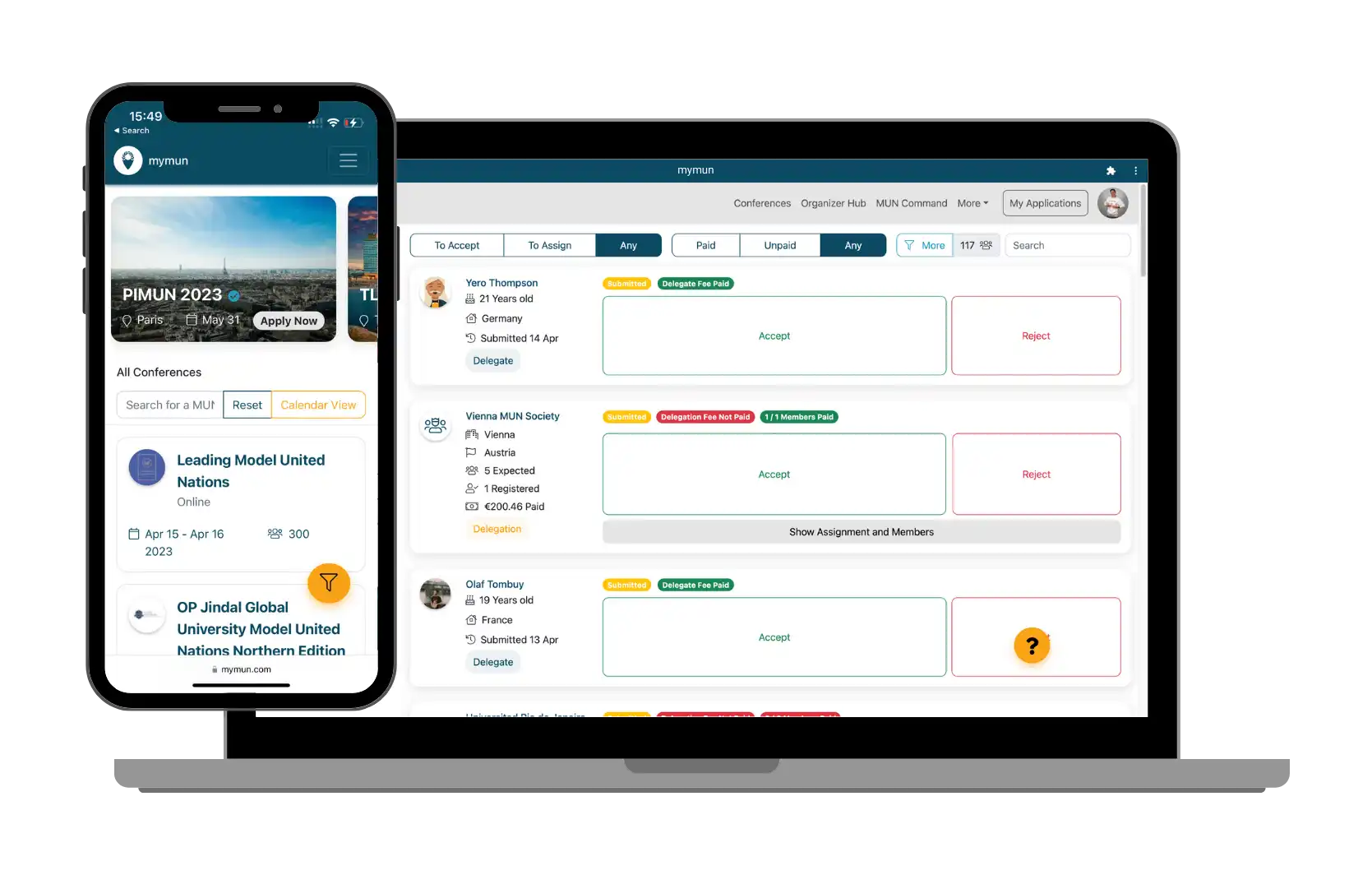 mymun is a real go-to in terms of MUN conferences. It allows both organizers and MUNers to meet anywhere in the world! I have been using mymun for years, both as a delegate and an organizer. Especially combined with MUN Command it is the best tool for any MUNer!